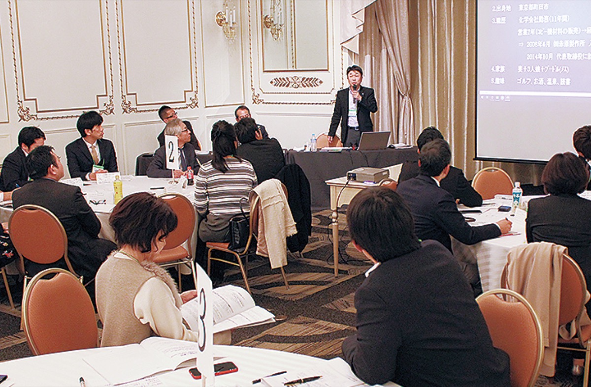 後半は5つの分科会に分かれてディスカッション。「経営者の役割と責任」をテーマにしたグループでは、座間市の板金加工業「赤原製作所」の赤原宗一郎社長が報告。2005年に入社し、父の後を継いで14年に社長に就任した赤原社長。全国の中小企業で課題となっている事業承継がスムーズに進んだことについて「父が元気なうちに話を進められたことが一番」と語った。参加者はその後、「会社の幸せとは何か」について議論した。