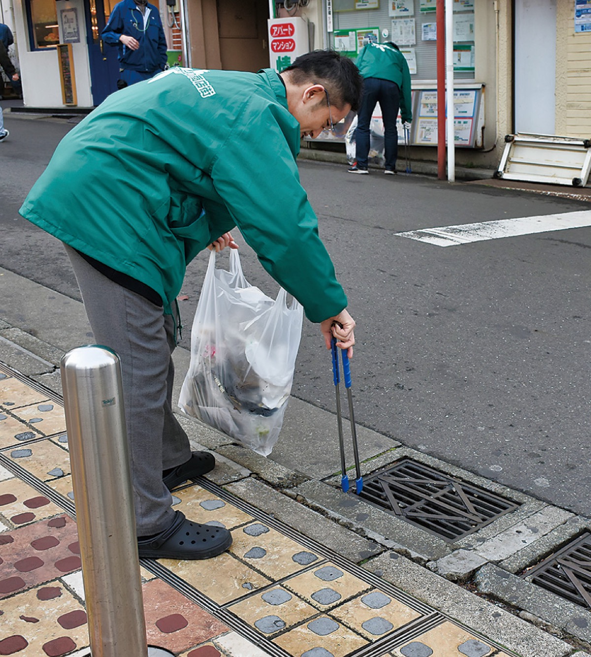 「買い物客にまた訪れたいと思ってもらえるようなことをしたい」と、3年前にまちの美化活動の一環としてごみ拾いを始め、以来欠かさず行ってきた取り組み。実施回数は90回を超え、清掃中に「いつもありがとう」と声を掛けられることも増えるなど、地域住民との交流を生むきっかけにもなっているという。