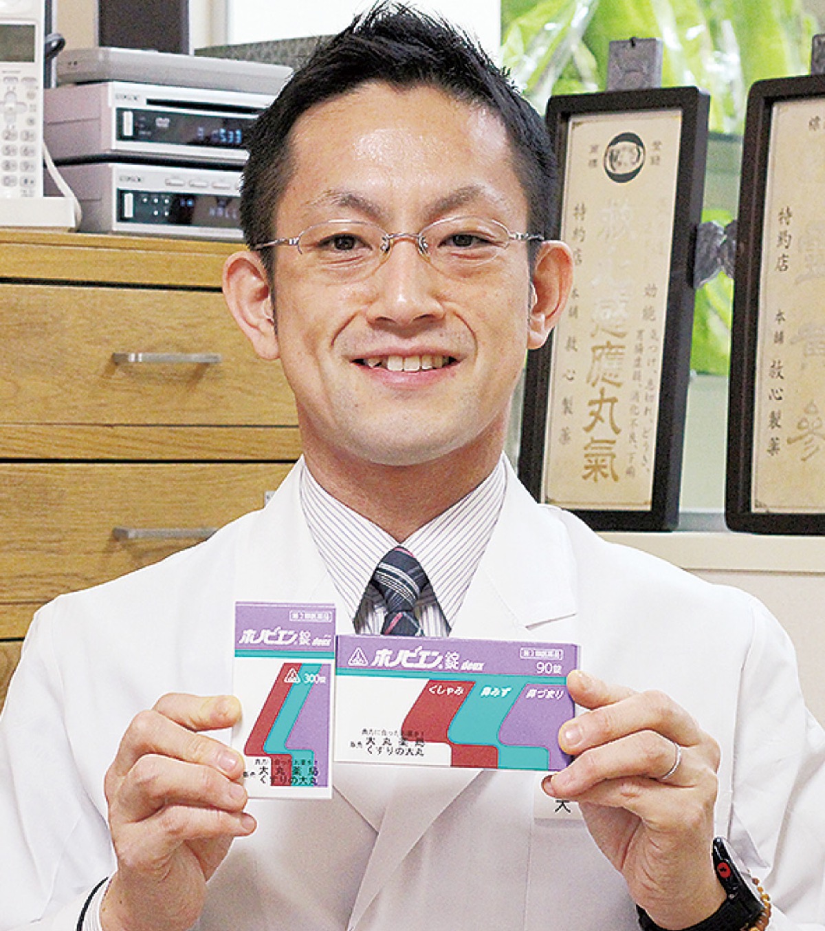 反町駅近くで50年以上店舗を構え、まちの漢方専門薬局として信頼の厚い「大丸薬局」(大野賢二薬剤師)では、この鼻炎薬「ホノビエン錠deux(ドゥ)」での花粉症対策を勧めている。