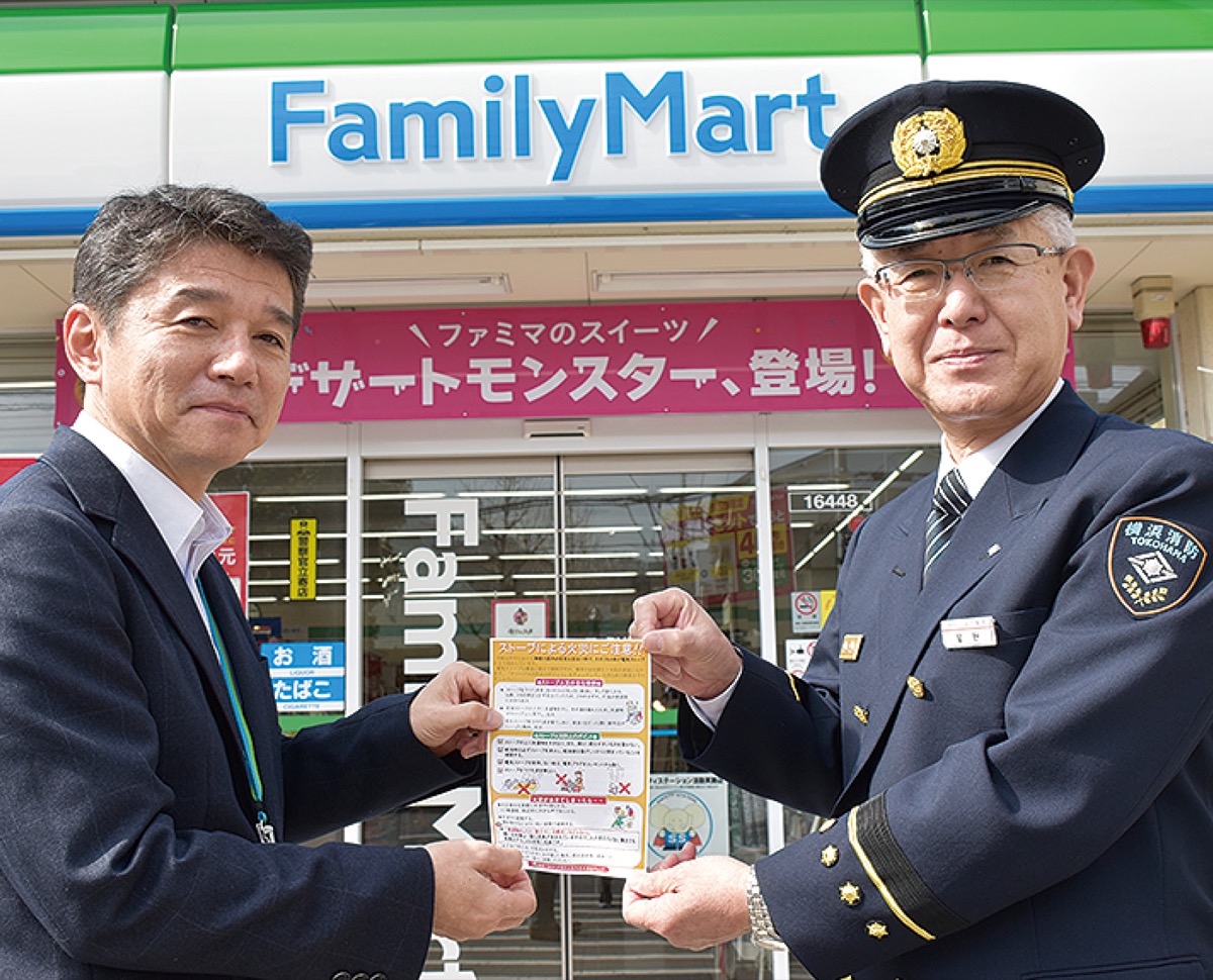 星野消防署長は「今年最初の火災で亡くなる方が出てしまった。もう死者を出さないという強い思いで、地域と密着しながら防災対策に臨みたい」とコメント。ファミリーマート横浜東営業所の北見達裕営業所長は「コンビニはご高齢の方も多く利用されているので、この取り組みが地域貢献の一助になれば」と話した。