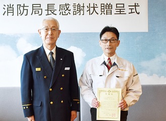 猛威を振るう新型コロナウイルスの感染拡大予防に役立ててもらおうと、太陽油脂株式会社(中山悟社長)=守屋町=が横浜市消防局(高坂哲也消防局長)に自社製品のハンドソープ240本を寄贈した。3月17日には贈呈式が実施され、神奈川区消防署の星野雅明署長から感謝状が手渡された。