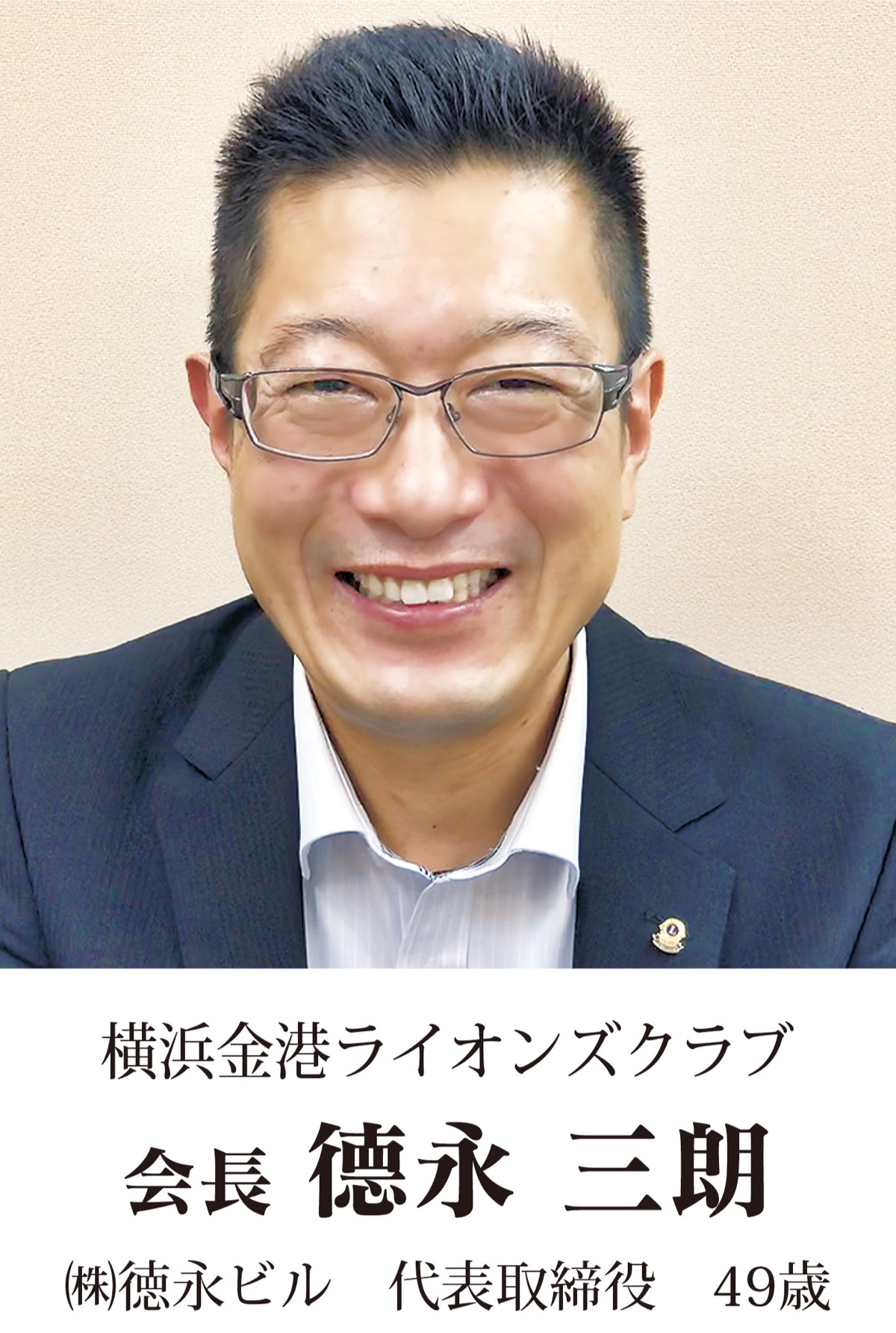 結成50周年の横浜金港ライオンズクラブ会長に就任した。チャーターメンバー(創立会員)の父も会長経験者で、自身の誕生がクラブ設立パーティーの数日前だったことから、会に縁を感じている。「節目の年に会長職を仰せつかり、ありがたい。『礼節〜半世紀の絆に感謝』をスローガンに、クラブの良いところを次の時代へと引き継いでいきたい」と抱負を語る。
