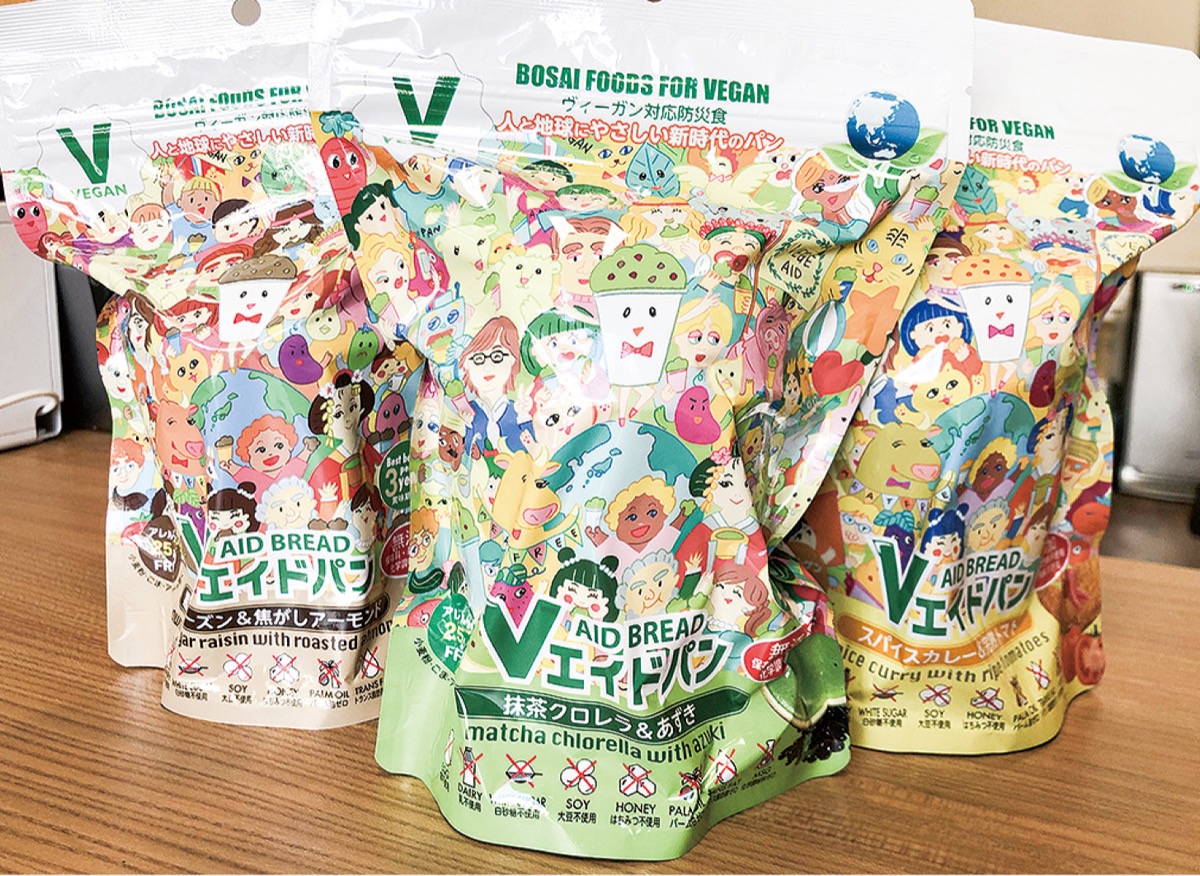 肉や魚だけでなく、卵や乳製品といった動物由来のものを一切口にしない完全菜食主義者であるヴィーガン対応の防災食「Vエイドパン」が、反町の漢方薬局・大丸薬局の店頭に置かれている。3種類の味のうち「抹茶クロレラ&あずき味」には、区内沢渡に関東支店を置くクロレラ工業が生産している、緑色植物の原点で単細胞緑藻の「筑後産クロレラ」が配合されている。ヴィーガンに対応した防災パンの開発は、世界初の試みだという。