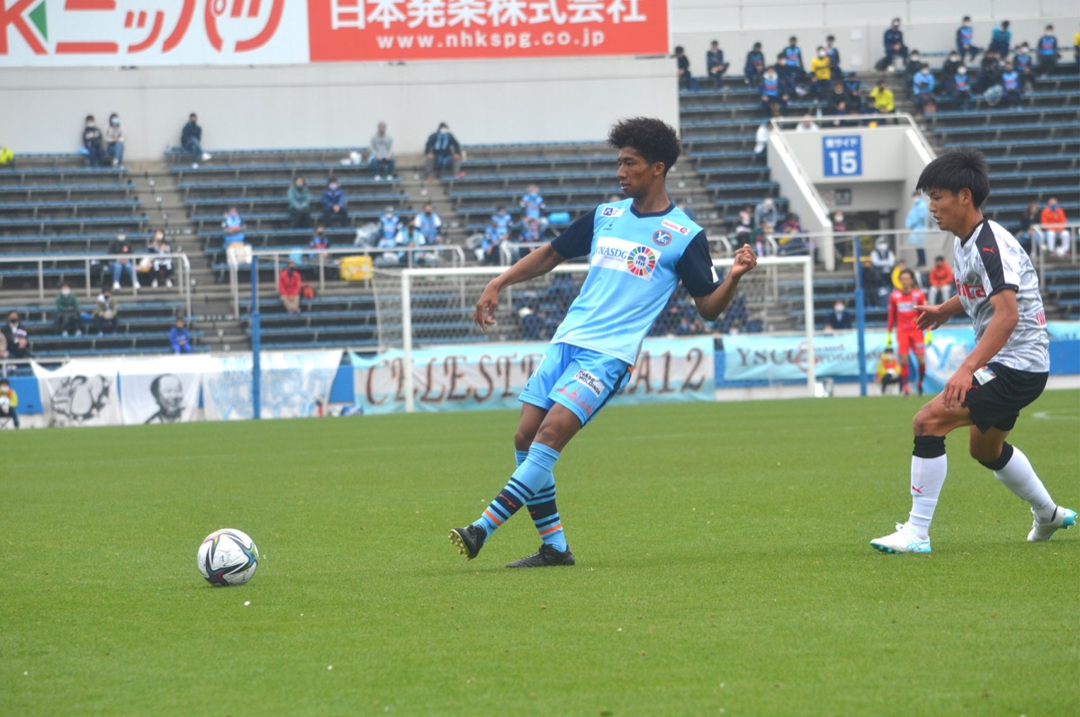 折り返して後半8分、35分で相手のシュートがポスト直撃も、失点には至らず。39分にはコーナーキックからのこぼれ球にDF池ヶ谷颯斗選手がボレーで合わせるも、相手に弾かれたボールはクロスバーに当たり、ゴールには吸い込まれなかった。後半アディショナルタイムには、相手のカウンターにDF宗近慧選手がゴール前で相手FWを止めるも、ファウルで一発退場に。その後の相手フリーキックも決まらず、試合終了。シュート数では相手を上回るなど優勢になった展開だったが、スコアレスドローで勝ち点1を分け合った。