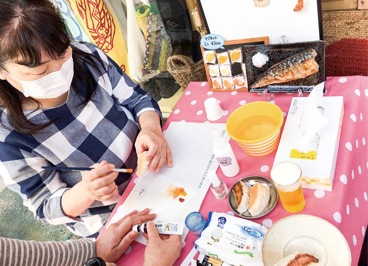 食品サンプル作家のつじやよさんを講師に迎え、昨年7月から開催している。これまでどら焼きやベーグルサンドなど、六角橋周辺の飲食店で販売されている商品を題材にしたキーホルダーやメモクリップを制作。今回は餃子専門店「M」の餃子をモチーフにしたマグネットを作った。