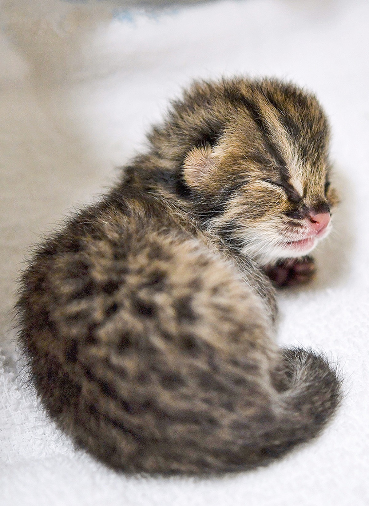 ズーラシアでは、環境省のツシマヤマネコ保護増殖事業に基づき2006年から飼育を開始。19年度からは、国内では同園のみが有する人工授精技術を用いて繁殖に取り組み、今年3月上旬に5歳のメス「マミ」の妊娠を確認。18日に赤ちゃんが誕生した。