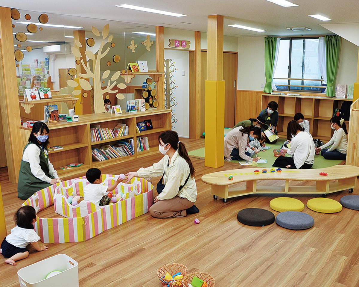 各階のフリースペースでは子どもと自由に過ごすことができ、地域で子育て支援活動の経験があるスタッフが常駐して気軽な相談や情報提供を行う。食生活や発達といった子育ての不安や女性特有の悩みなどに専門家が応じる相談会、子育てに関連したトーク会なども実施し、親子の居場所を提供していく。