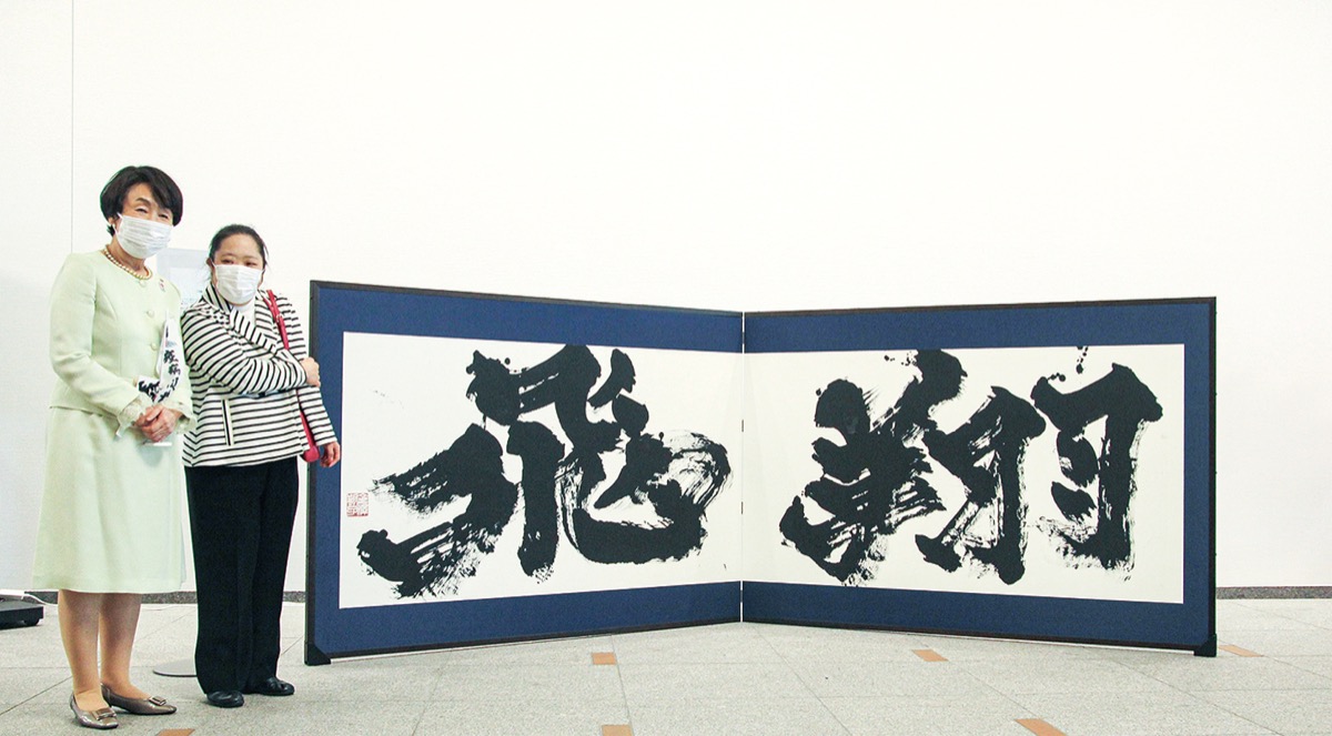 金澤さんは東京五輪・パラリンピックの公式アートポスターの1つを手掛けており、昨年1月には市が主催した五輪開幕200日前イベントに出席して書道パフォーマンスを披露。縦約1・6m、横約3・8mの紙に力強く「飛翔」と揮毫していた。