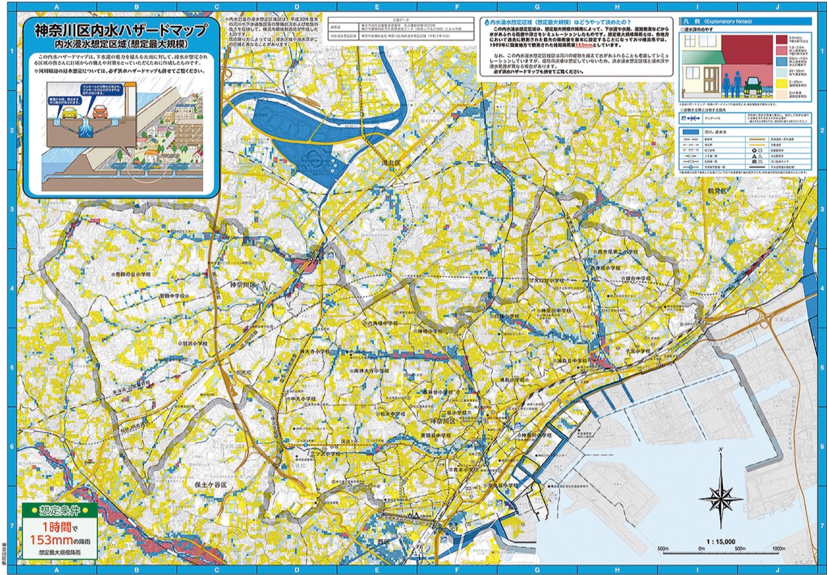 インターネット上では「内水ハザードマップ 横浜」で検索できる。