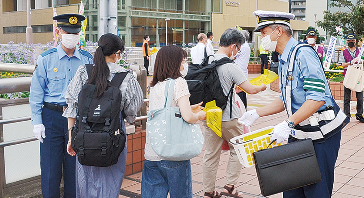 神奈川警察署の署員をはじめ、神奈川交通安全協会や神奈川安全運転管理者会など約30人が参加。安全を啓発するチラシや夜間に光る反射材、ウエットティッシュが入った袋などを通行人に配布した。区内では、今年1月から6月末までの時点で人身事故が245件と昨年よりも増加傾向にあるという。秋本剛署長は「千葉県で起きた小学生が死傷する事故など、(歩行者が)注意していても発生してしまう事故はある。巻き込まれる人を減らすためにも、事故の芽を摘んでいきたい」と語気を強めた。