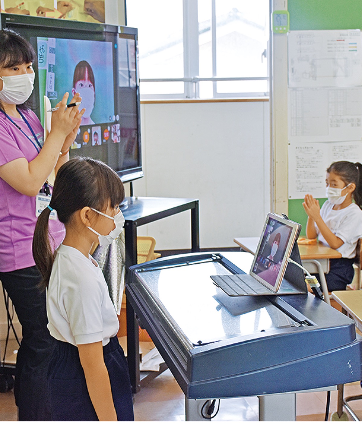 端末の持ち帰りは9月1日からの分散登校と同時に開始し、授業のライブ配信などに活用している。前段階として市が各家庭の通信環境などを調査した結果、端末配布後の4月・5月には84%の接続を確認。通信環境がなく就学援助を受ける家庭にはモバイルルーターを用意した。
