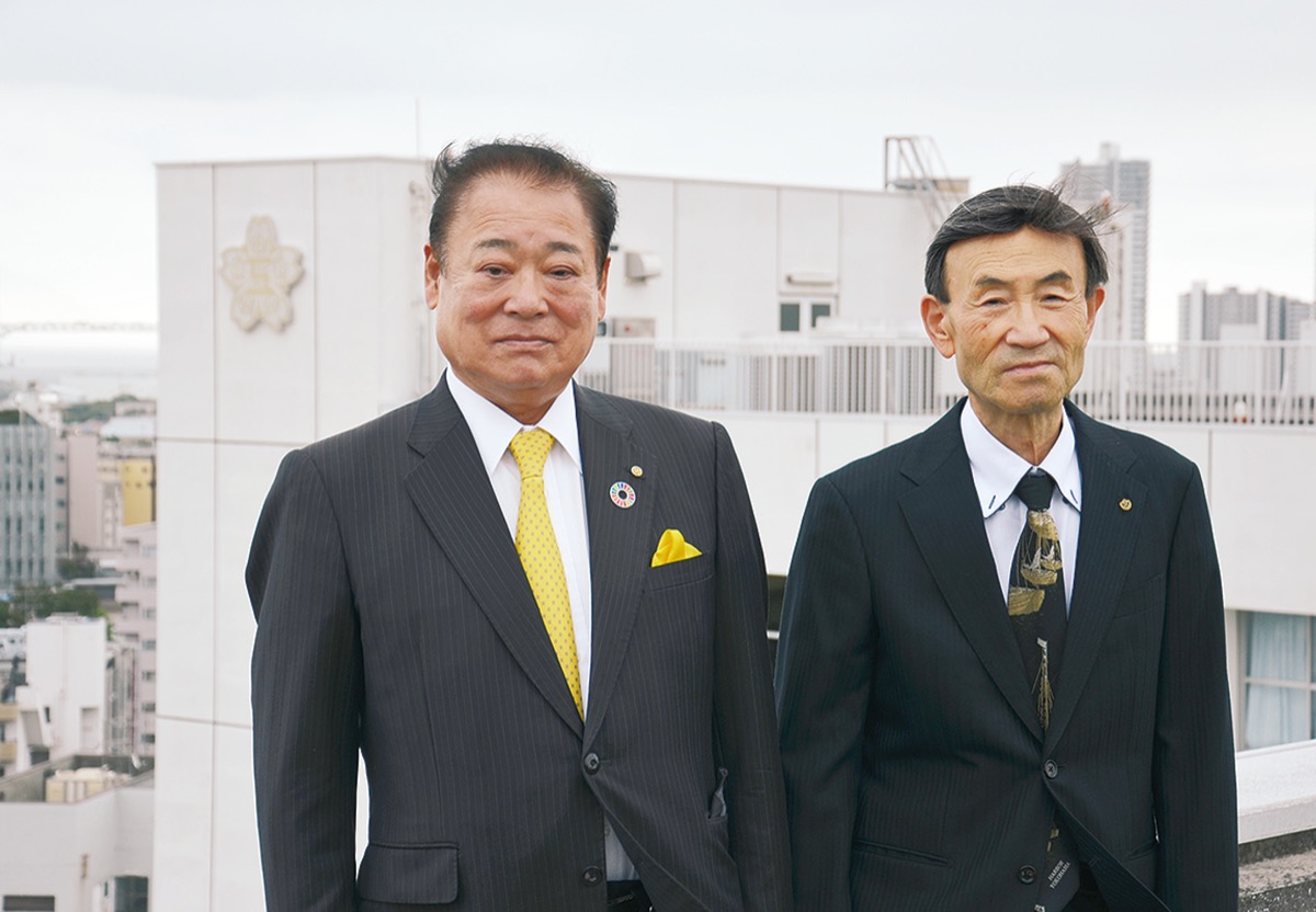 53期生の田中さんと49期生の福島さんは、共に定時制の電気科を卒業。今年で創立110周年を迎えた母校の記念に残るものをと考え、校舎の壁面に設置する校章を贈ろうと決めたという。