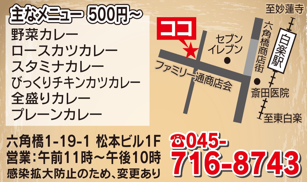 白楽駅そば、六角橋に昨年オープンしたカレー専門店「カリビアン」。早くもカレー通から「一度食べたらクセになる」と高い評価を受けており、店内だけでなく、テイクアウトでもその味が楽しめるから嬉しい。
