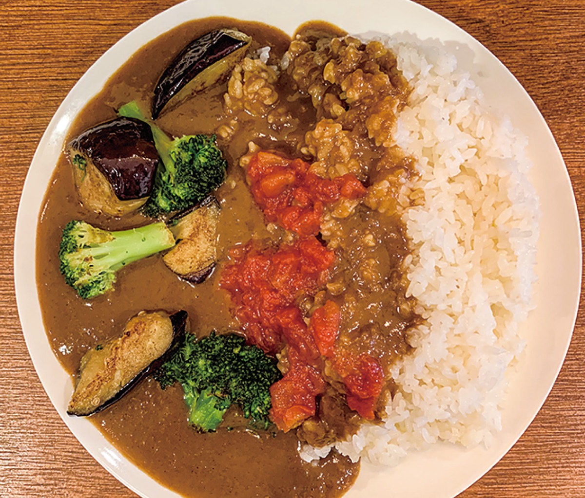 同店が「女性の人気がとても高いです」とおすすめするのが野菜カレー。野菜カレーは大きめのナスやブロッコリーが入っていて、ナスの甘みとトマトの酸味のバランスが良い。