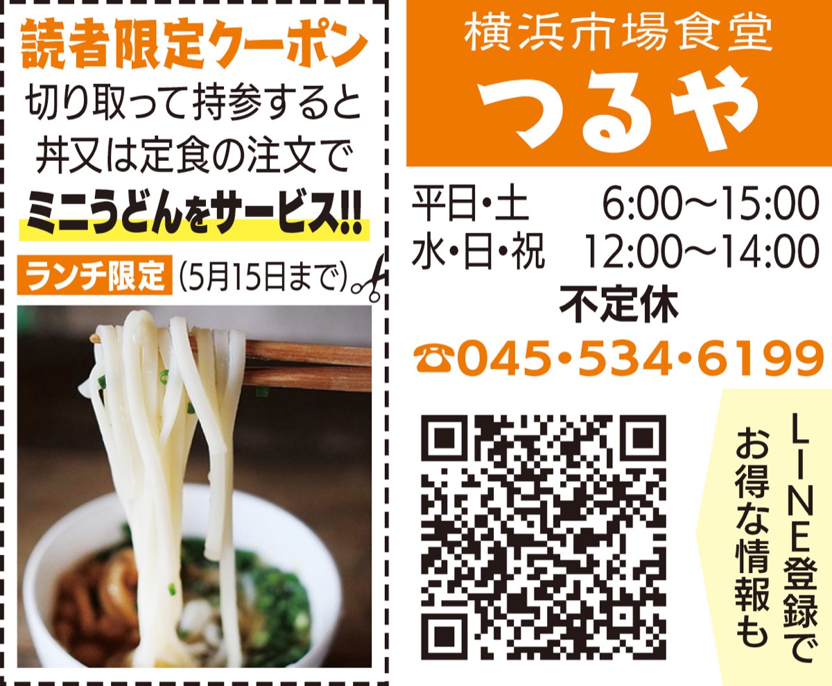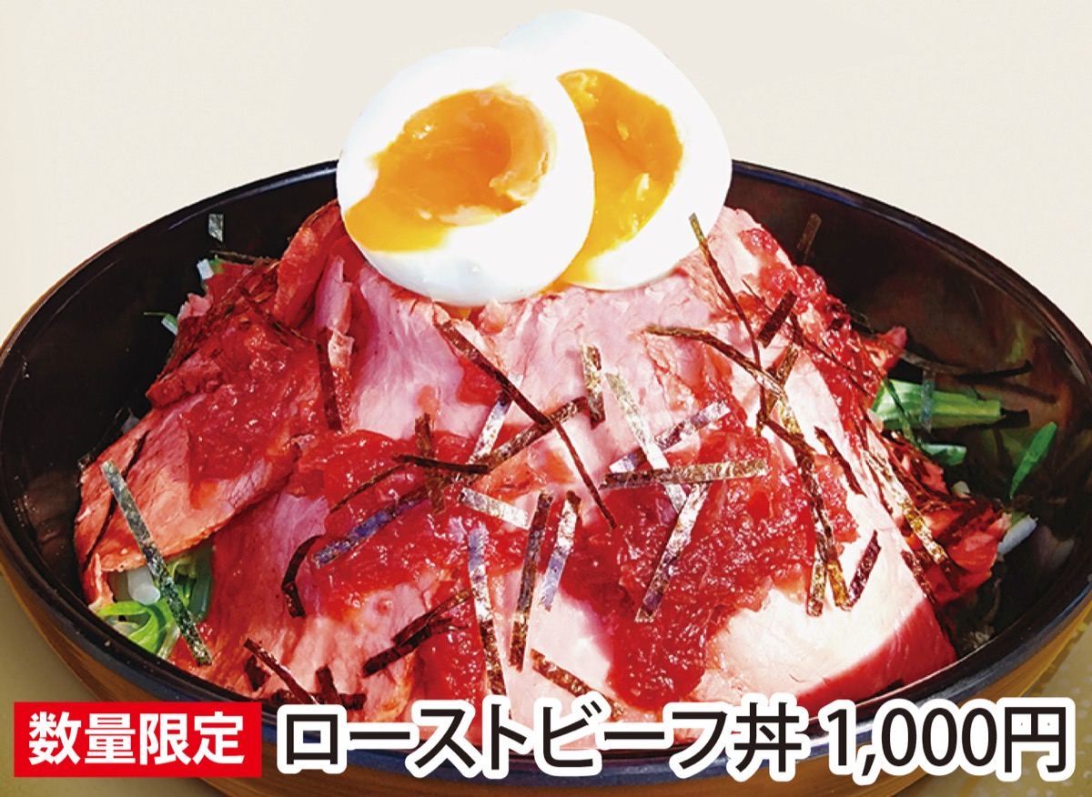 横浜中央卸売市場の前にある「横浜市場食堂 つるや」=栄町89=は、日本三大うどんの一つと名高い「五島うどん」を看板メニューに掲げ、丼や定食も豊富に揃えるお食事処。このほど、この季節限定でローストビーフ丼の提供が始まった。