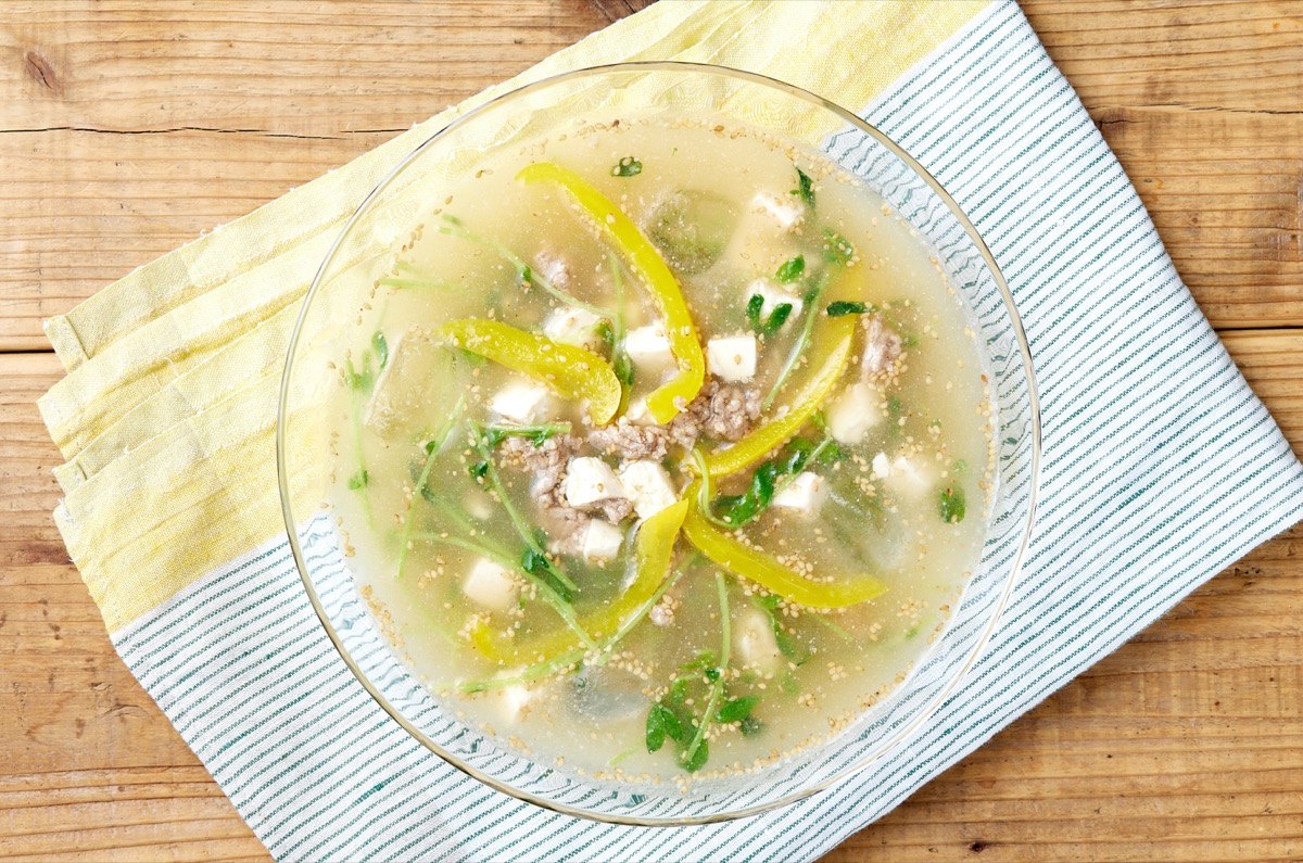 豆苗とパプリカのごまたっぷり 味の革命夏みそ汁