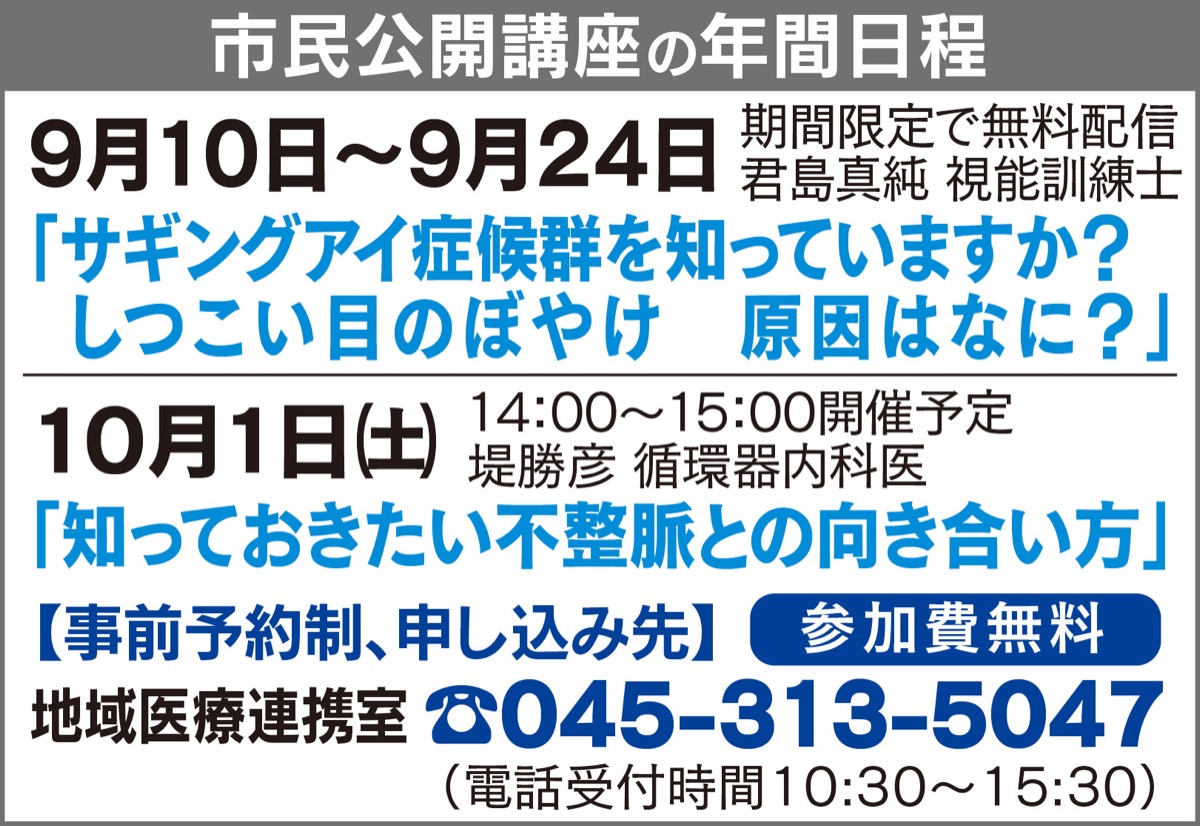 神奈川歯科大学附属横浜クリニック=神奈川区鶴屋町3の31の6=では、目のぼやけについて解説する講座を同クリニックのホームページで配信する。9月10日から24日までの期間限定で、視聴無料。
