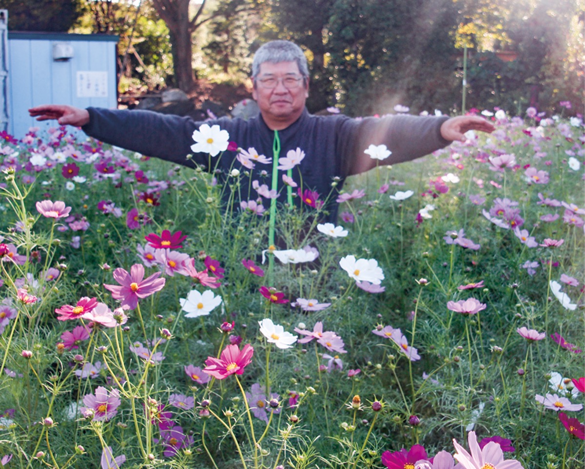 菅田町の特別養護老人ホーム「けやき荘」を運営する社会福祉法人孝楽会の職員らが管理する「けやき農園」(井上友二園主=人物風土記で紹介=)=菅田町1の1=のコスモス畑で現在、フォトコンテストが開催されている。