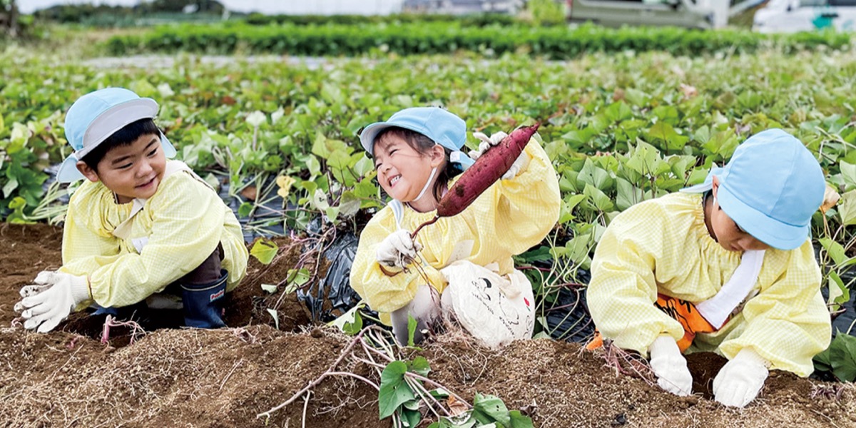 園児たちは手やスコップを使って土をかきだし、芋が土から顔を出すと、力いっぱいつるを引っ張って夢中に掘り起こしていた。園児たちが収穫した芋は、それぞれ自宅に持ち帰った。今後、園でも収穫した芋を食べる行事や、つるを使ったリース作りも予定しているという。