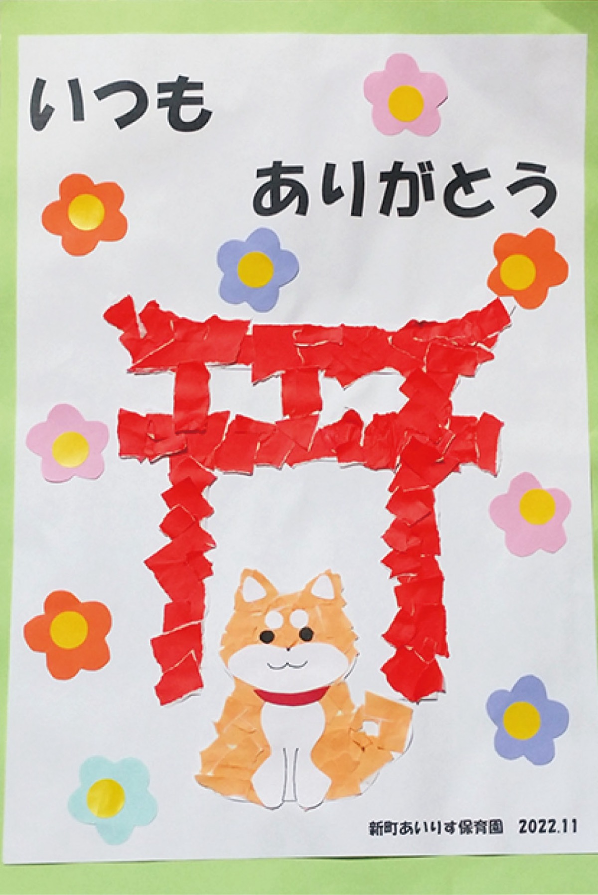 新町あいりす保育園の園児たちが11月23日の「勤労感謝の日」にあわせ、地域を回り日頃の感謝を伝えた。