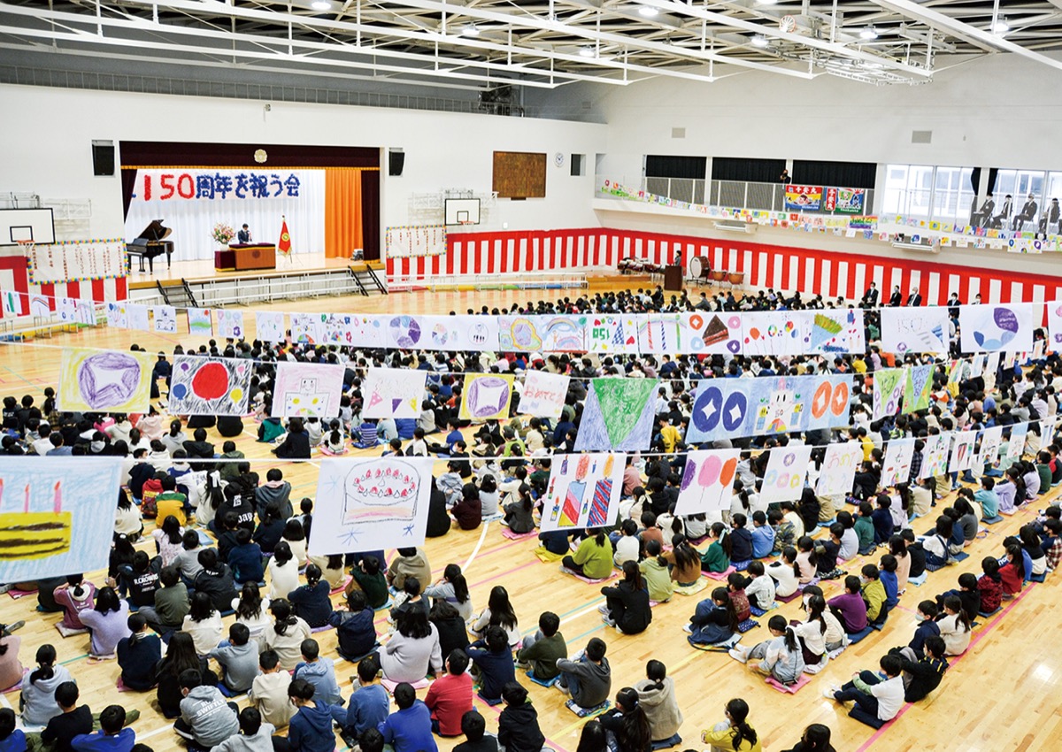 子安小学校で1月14日、「創立150周年を祝う会」を行った。
