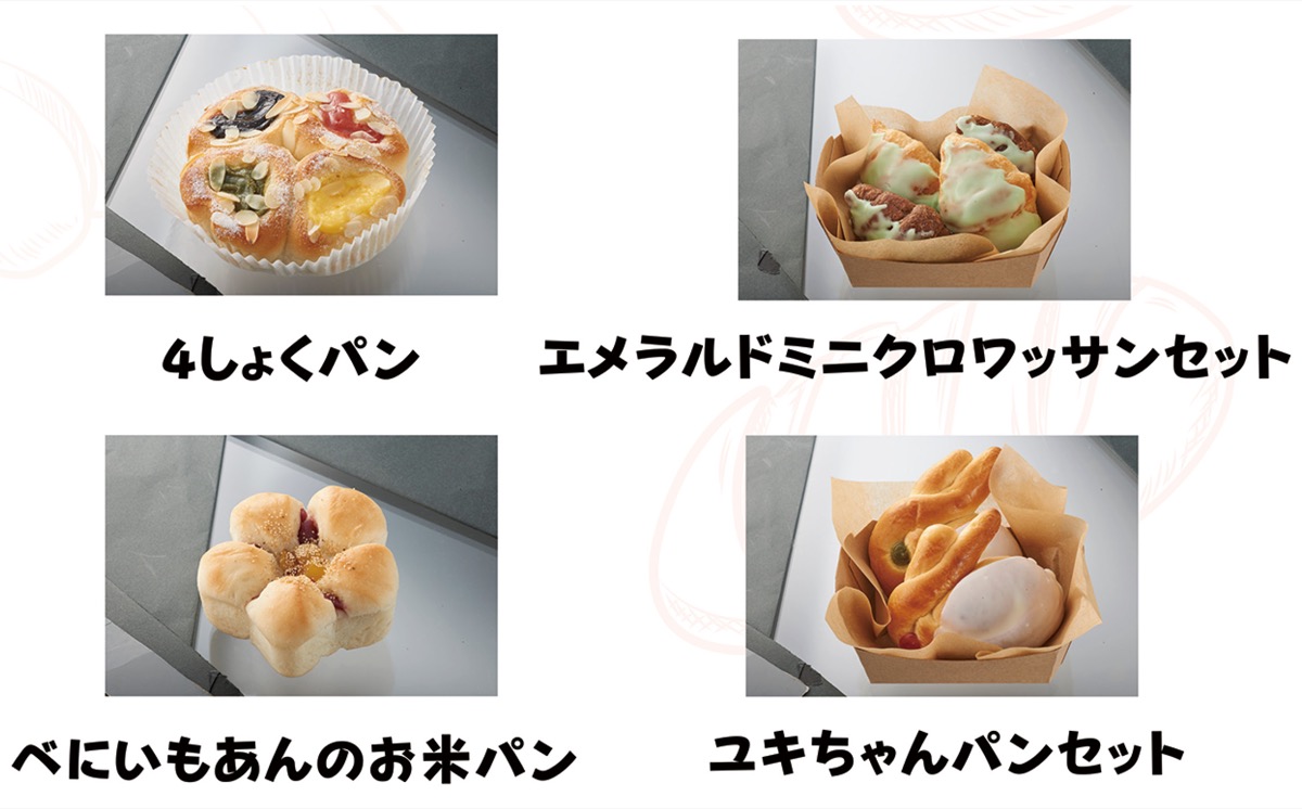 商品化されたのは、校内で1、2年次に育ててきたさつまいもと米をイメージした「紅いもあんのお米パン」、同校のイメージカラーである"緑"を表現した「エメラルドミニクロワッサンセット」、カラフルでかわいいパンを作りたいという思いから生まれた「4色パン」、同校で飼育している白いうさぎをモチーフにした「ユキちゃんパンセット」の4つ。1月18日から販売を開始しており、売れ行きも好調という。