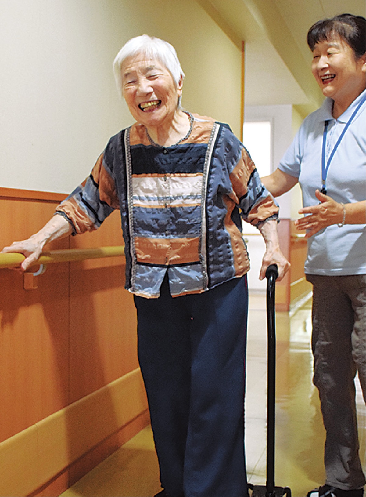 介護施設との違いは、自宅と同じく外出自由。食事も購入や自炊OKで食事配膳サービスも。介護サービスは各々の介護度に応じて必要なものを提供。家事など介護保険外で手助けが欲しい場合もサービスが用意され、心強い。緊急呼出ボタンは24時間対応(スタッフ常駐)。