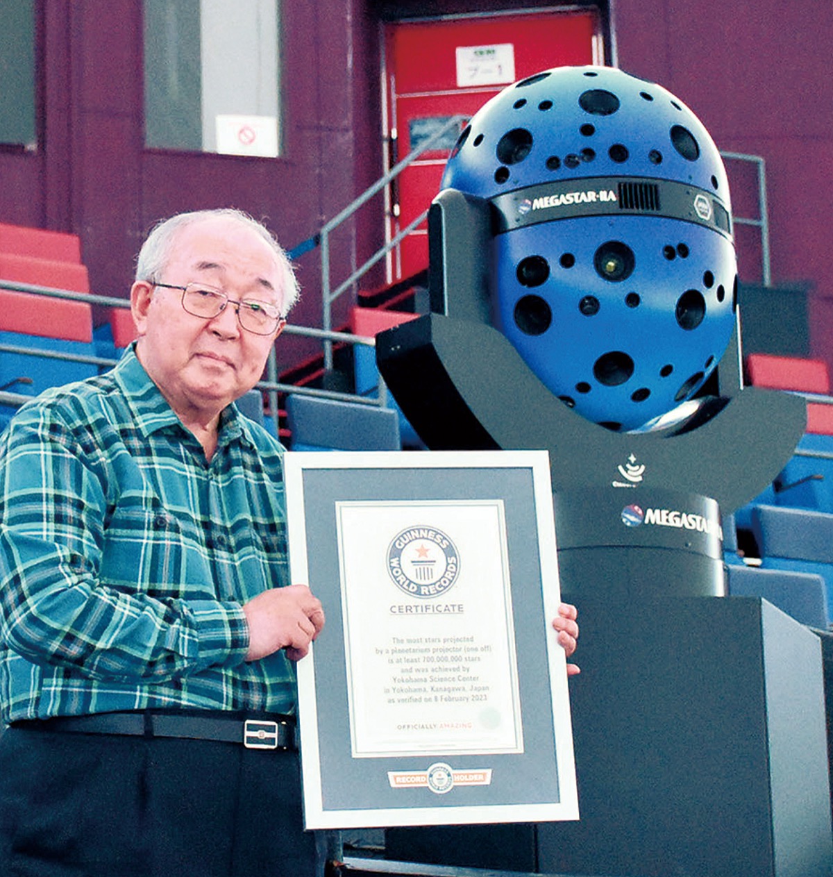 同館のプラネタリウムは昨年12月1日、有限会社大平技研=都筑区=の新たな投影機「メガスターIIA」を導入してリニューアルオープン。約12億個の星を映し出す機能を有する機種となったことから、再開前日に関係者や地域住民らを招いた内覧会でギネス世界記録に挑戦していた。