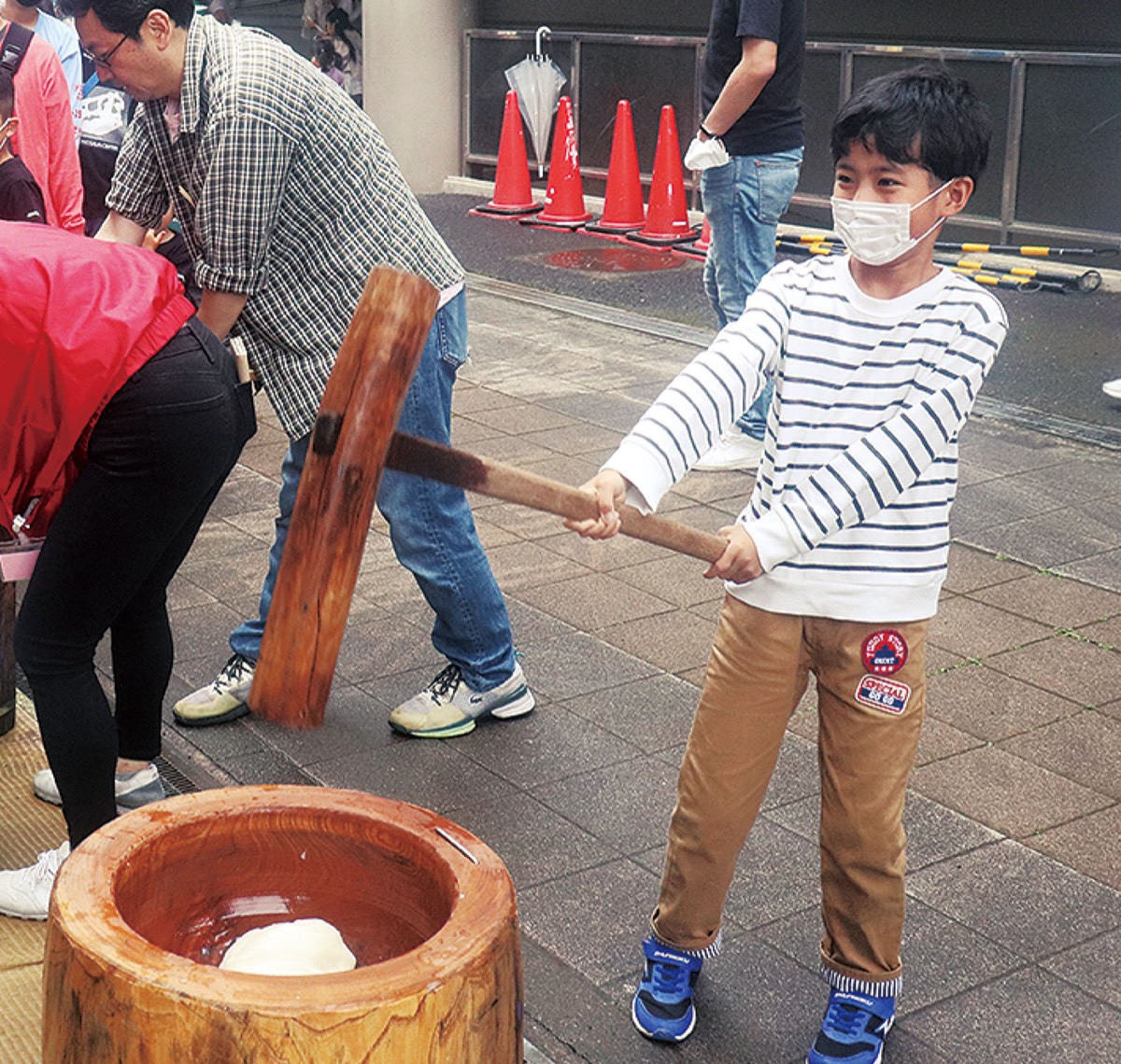 初めて餅つきを体験したという2年生の男子児童は、「きなこ餅が大好き。杵が重くて大変だったけど、面白かった」と笑顔を見せた。5年生と5歳の姉弟も、「つくのを楽しみに家族で来た。自分たちでついた餅はとても美味しい」と口を揃えた。