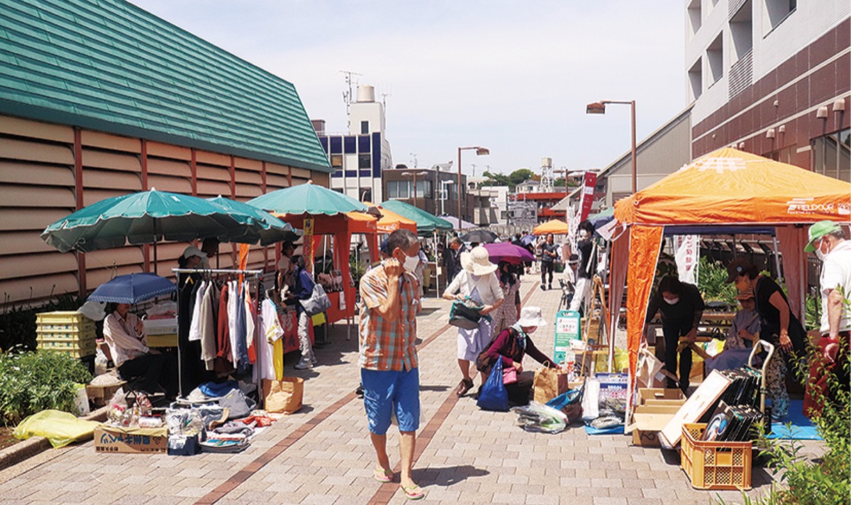 地域住民らによるフリーマーケットを中心に、地元企業や学校等のブースが広がる同フェスタ。地域の風物詩となっていたが、直近3回は悪天候により中止に。約1年ぶりの開催となった当日は、快晴の青空の下に多くの地域住民らが来場=写真。初夏の陽気に包まれた会場で、来場者は気に入った品を探して買い物を楽しんでいた。