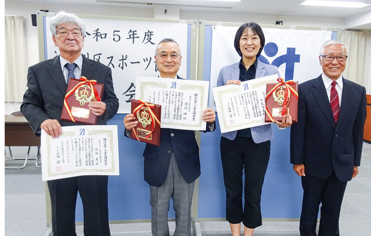 「横浜スポーツ普及功労賞」の表彰式が5月22日、神奈川区スポーツ協会(志村昌佐会長)総会内で開催され、区内では渡辺紳さん、守屋智美さん、住谷勇さんの3人に賞状と盾が贈られた。