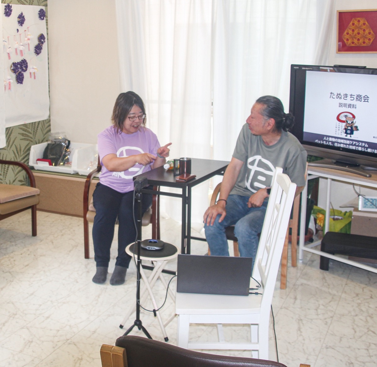 片倉にある介護事業所「ひだまり片倉」で6月24日、「たぬきちカフェ」と題した、コーヒー片手にこれからの地域社会について語り合うイベントが開催された。このカフェを主催するのは、今年1月に設立された(株)たぬきち商事(秋丸アルハ代表取締役社長)。同社は「屋根のない長屋をつくること」を目指し、地域住民とペットに寄り添うサービスを片倉から展開しようと活動している。