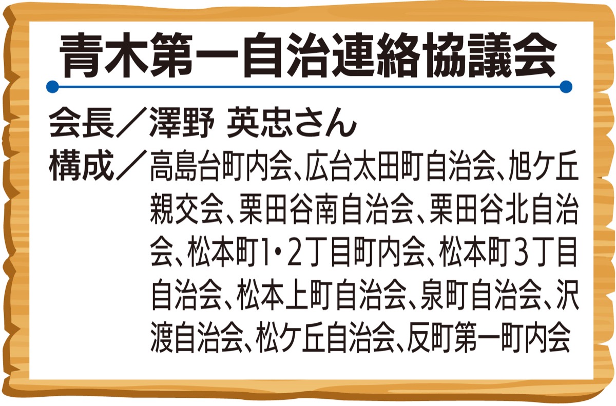 子ども世代も多く、清掃や見守り活動、非行化防止運動など、キレイな地域で安心して暮らせるまちづくりにも尽力してきた。今年は、地区内の青木小学校が開校150年の節目も迎える。「子どもは地域の宝。みんなで祝って、今後も地域のつながりを深めたい」と澤野英忠会長は話す。