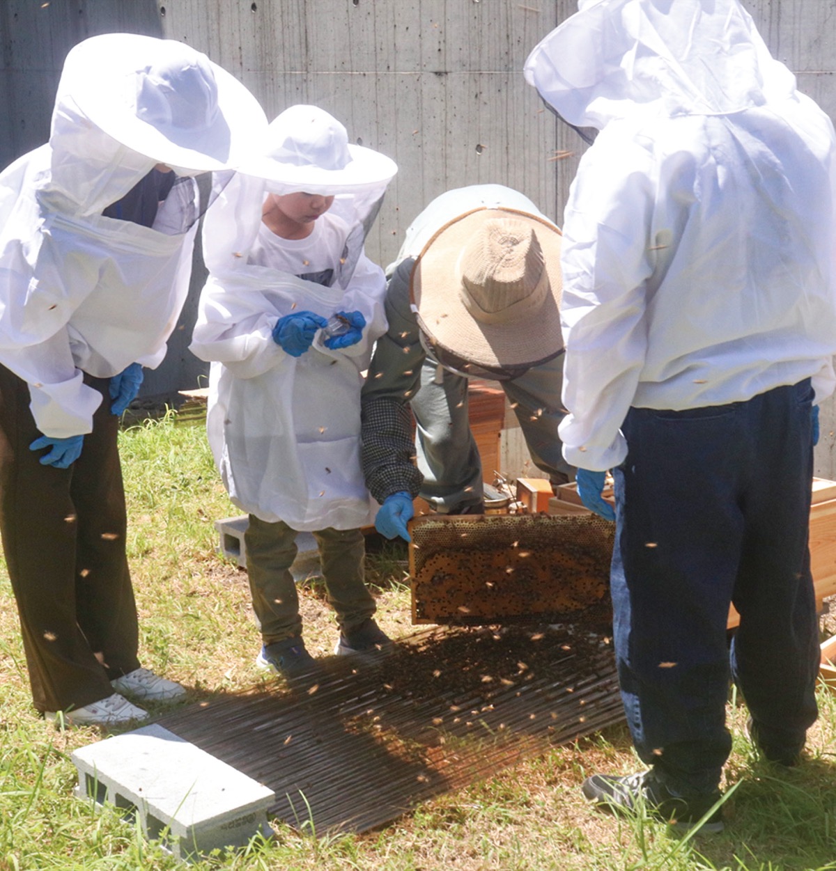 同学園が2022年9月に始動した同プロジェクトに参加するのは、同学園の専門学生や公募で集まった小学生、高校生。ミツバチの活動により受粉が行われ果物が育ち、その蜂が生きていくには花や緑が不可欠であることから、養蜂を通じて子どもたちに地域の自然の大切さを学んでほしいとの思いで始まった。