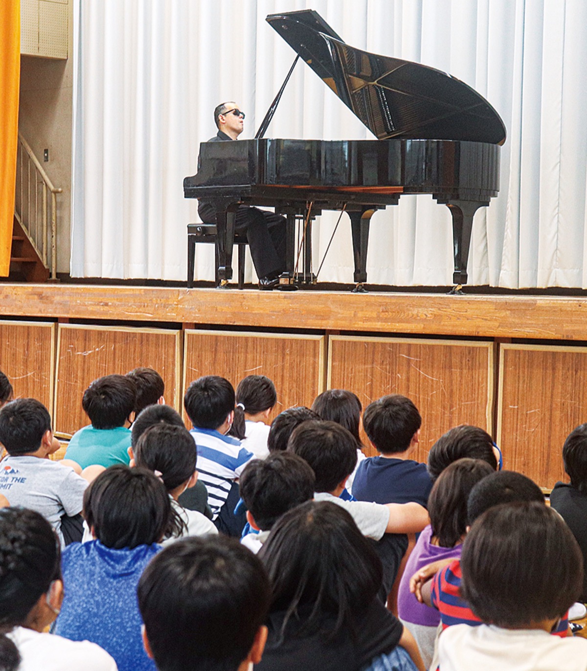 三ツ沢小学校(高木伸之校長)で9月6日、ピアニストの梯剛之さんによる特別コンサートが開催された。