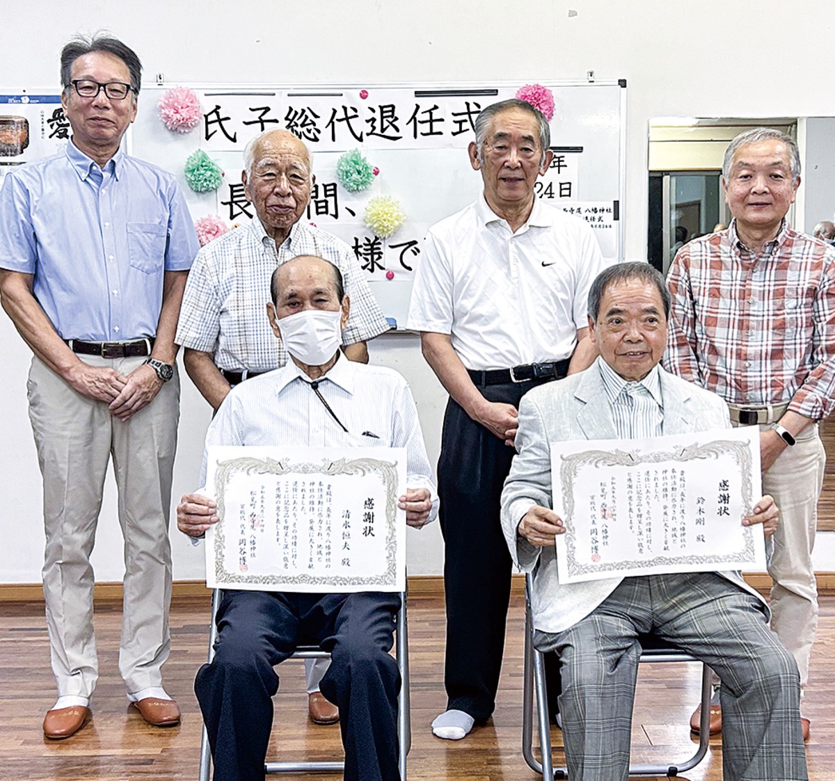 松見町西寺尾八幡神社氏子総代会(岡谷博代表)は9月24日、松見連合会館で氏子総代退任式を執り行った。