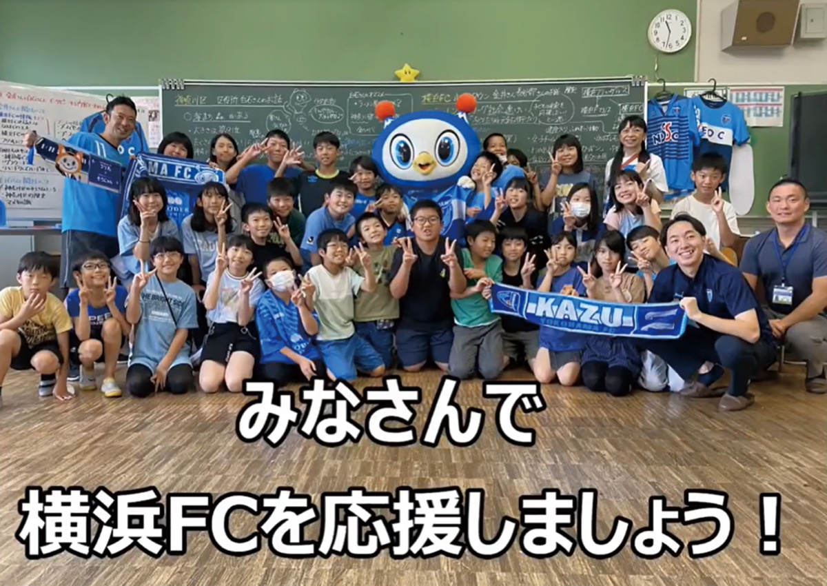 西寺尾小学校5年1組は、横浜FCと神奈川区役所と連携し、クラブや地域の魅力発信に取り組んでいる。それぞれの魅力を知るために9月に、区とクラブの担当者による特別授業を実施。9月25日には、クラブの練習見学も行い選手たちと直接交流も深めたという。