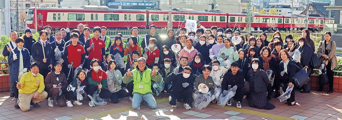 「かなっくウォーク」の愛称で知られるJR・京急東神奈川駅の連絡橋周辺で12月1日、地域住民や行政、周辺企業等による清掃活動「かなっくリーン」が開催された。