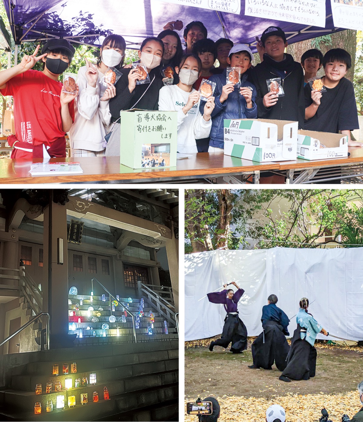 宗興寺と甚行寺では、同小児童たちが作成した灯ろうによるライトアップイベントも開催。冬の夜空の下、寺院を幻想的な光で包み込んだ。また、米山流殺陣術による演舞やシンガーソングライター栗山龍太さんによる弾き語りライブ、青木小学校による大道芸などの公演も行われ、来場者たちを楽しませた。