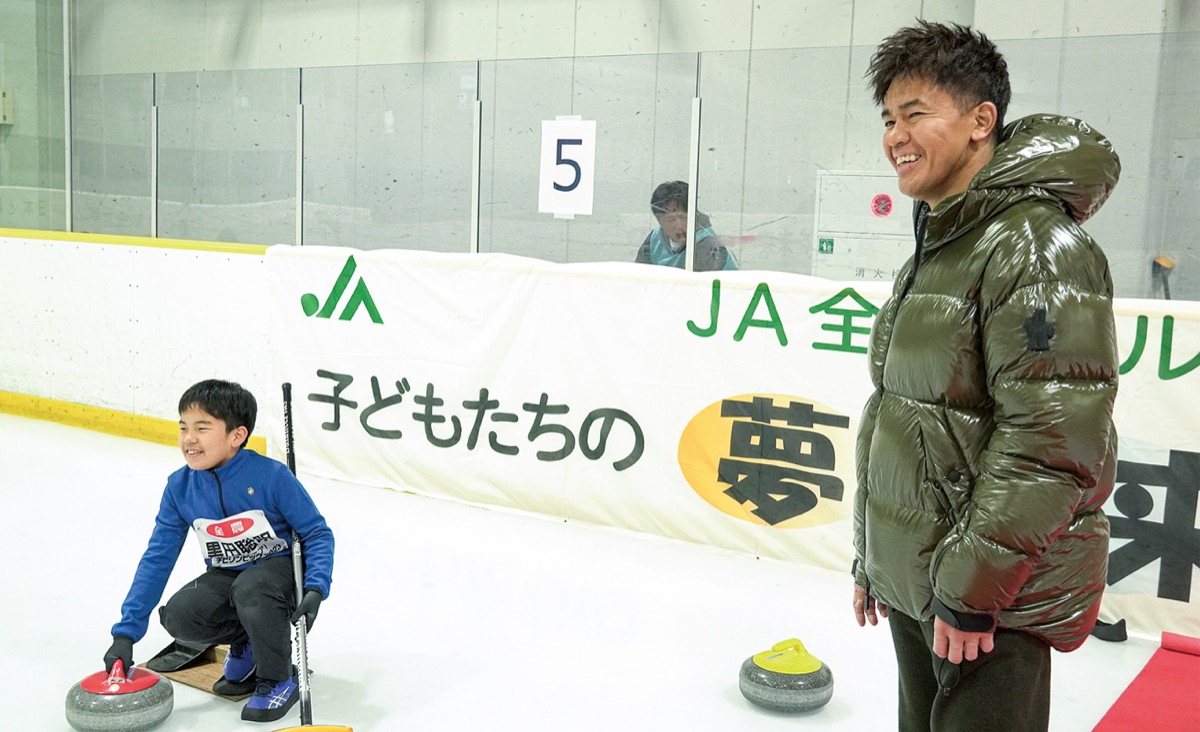 小学生によるカーリングの全国大会「JA全農チビリンピック2023第5回全農杯全日本小学生カーリング選手権」が12月24日、横浜銀行アイスアリーナ=広台太田町=で行われ、平昌五輪日本代表の山口剛史選手(SC軽井沢クラブ)やタレントの武井壮さんらが応援に駆け付けた。