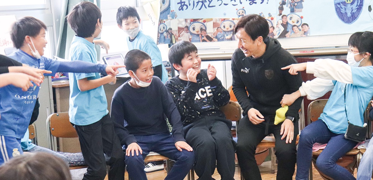 シーズンを終え、横浜FCの元10番・内田智也さんら、ともに活動してきたスタッフを招いて、感謝を伝える報告会を開催した。児童たちは、感謝のメッセージボードを贈呈。活動の振り返りでは、「チラシを渡して、感謝や喜びの声をかけてもらい嬉しかった」「選手の優しさに感動した。試合中のプレーでは勇気をもらった」などと話した。その後は、全員でレクリエーションゲームを楽しみ、内田さんが罰ゲームでものまねを披露する場面も。最後は、児童たちがクラブの応援ソングに乗せたダンスを披露し、楽しい時間はあっという間に経過した。