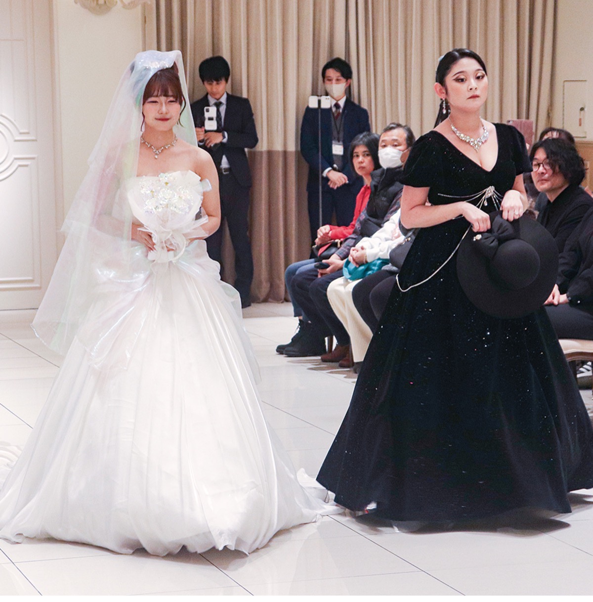 今年は47人が8チームに分かれ、各宝石をテーマにヘアメイクやドレスを考案。アニヴェルセルみなとみらい横浜=中区=を舞台に、計16人が美しいドレス姿を披露し、プロモデルさながらのウォーキングや音楽に合わせた演出などで、会場を盛り上げた。