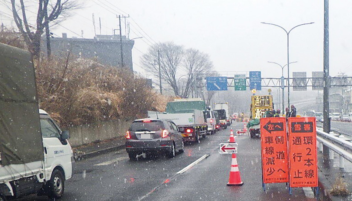 関東地方で2月5日から6日にかけて降った大雪で、神奈川土木事務所は市道環状2号線三枚高架橋(羽沢町〜菅田町)で初めてとなる予防的通行規制を実施した。土木事務所の担当者に当時の状況を聞いた。