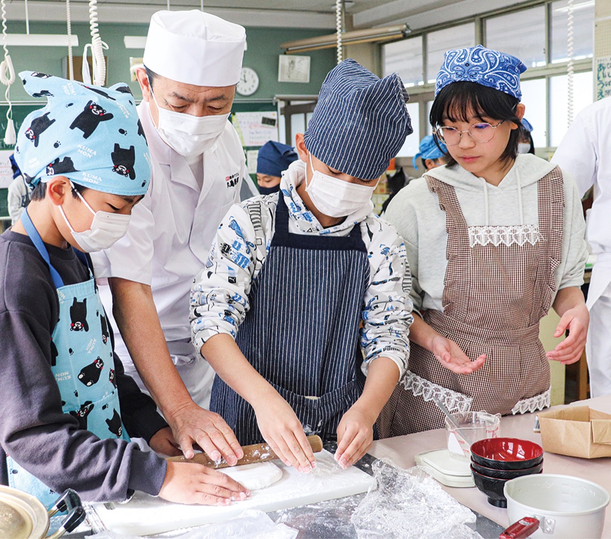 神橋小学校5年2組は2月29日、米粉を使ったうどん作りに挑戦した。