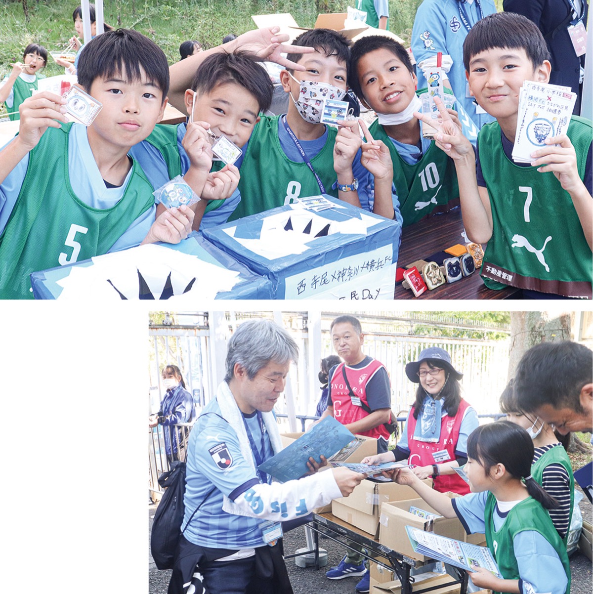 同小5年1組では、クラブと神奈川区の魅力をPRしようと活動してきた。昨年10月の神奈川区民DAYでは、児童が作ったオリジナルのリーフレットやグッズを試合会場で配布した。また、練習見学や出前授業などで選手・スタッフとの親睦も深めており、今季の開幕戦前にも試合のPR活動を一緒に行った。