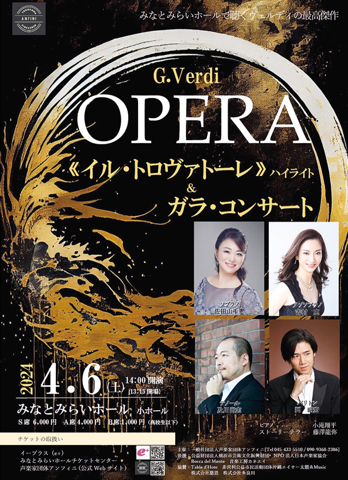 横浜・川崎を拠点にオペラ公演やコンサートを行っている「声楽家団体アンフィニ」によるオペラ『イル・トロヴァトーレ』&ガラ・コンサートが4月6日(土)に横浜みなとみらいホールで開かれる。午後2時開演。
