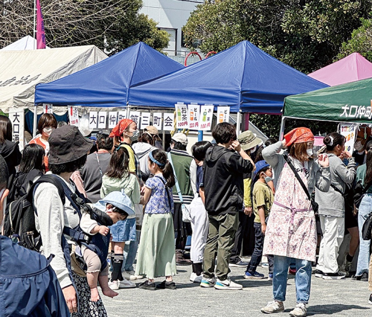 地区内の各町会が飲食などの模擬店を出店。大口台小学校6年生がソーラン節を披露したほか、地域の障害者施設による販売や三角くじの抽選会も行われた。会場には4月に着任した鈴木茂久神奈川区長も訪れた。