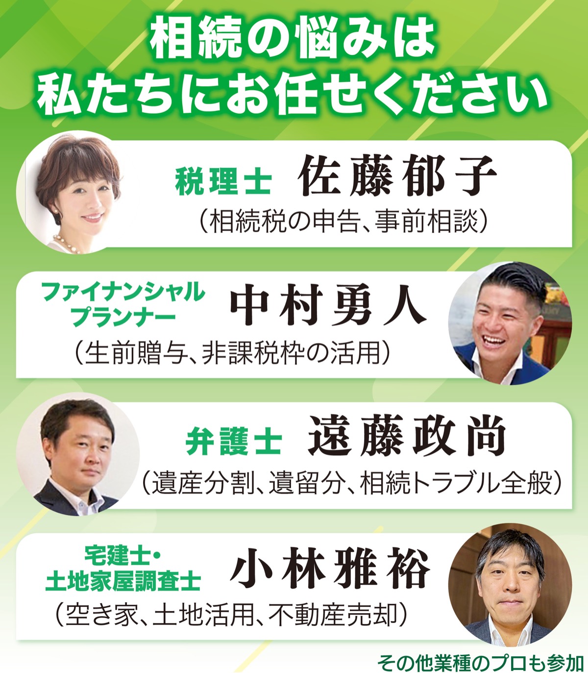 事務局は「些細な悩みでも構いません。5人のプロと話し、この機会に一緒に解決しましょう」と呼びかける。先着順のため予約はお早めに。
