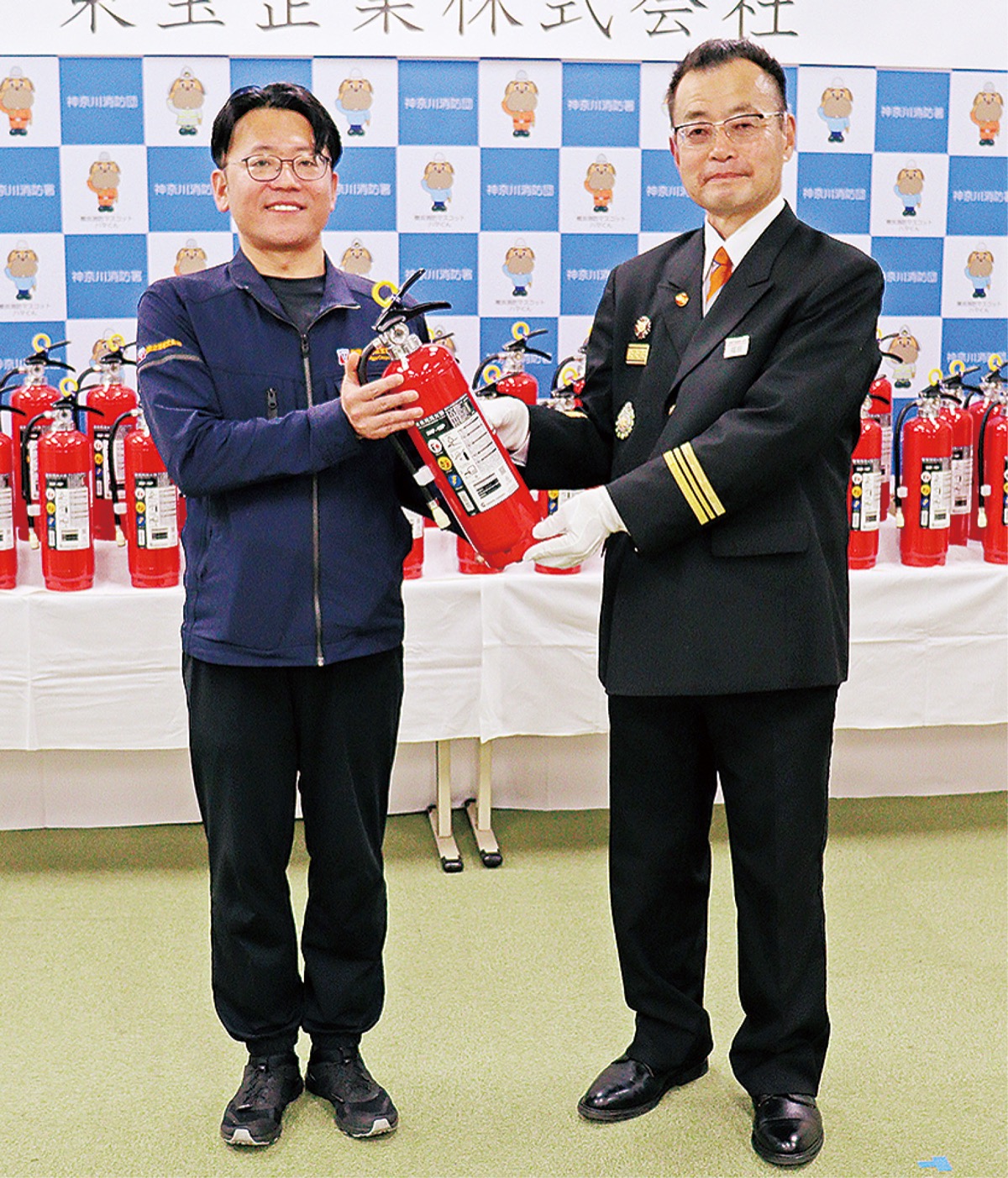 東宝企業株式会社=入江=は4月23日、神奈川消防団に消火器35本を寄贈した。