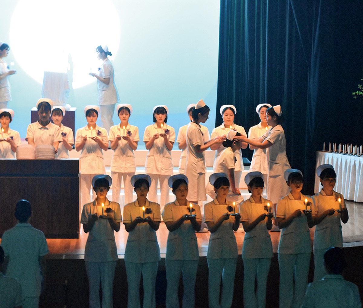 式では壇上で教員から女子学生にナースキャップ、男子学生にポケットチーフが手渡された。その後、学生たちは壇上後方のナイチンゲール像に灯された、看護の「心の灯」を模した火を各々の燭台に移した。最後に学生全員で「初心を忘れず強い信念を持ち学び続け、一人一人真摯に向き合い、その人らしさを尊重した看護を提供します」と誓いの言葉を述べた。保護者や実習先の病院関係者らが見守る中厳かな雰囲気で行われた。
